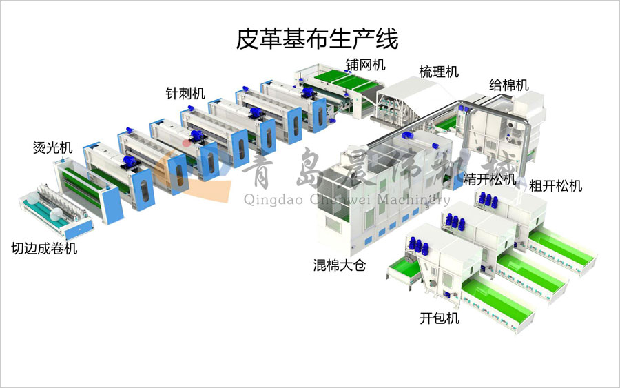 具有皮革基布生產(chǎn)線內(nèi)部結(jié)構(gòu)無規(guī)則,一定的表觀密度,纖維分布均勻,厚度一致,表面平整,耐高溫,拉伸力和剝離力強等特性。
